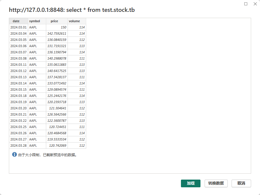 DolphinDB 开发了自定义连接器,支持用户使用 Power BI 连接 DolphinDB 数据库获取数据,并在 Power BI 中进行可视化操作。