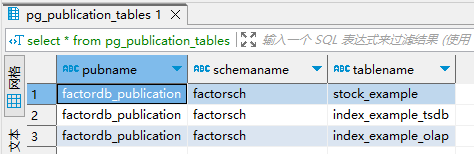CREATE PUBLICATION dbz_publication FOR TABLE debezium.index_example,debezium.stock_example;