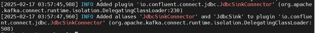 查看日志提示没有 JdbcSinkConnector 包的加载。JdbcSinkConnector 是包含在
