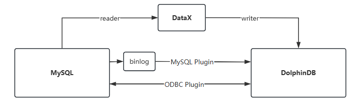 DolphinDB 提供了两个插件用于 MySQL 和 DolphinDB 之间进行即时数据交互。其中 MySQL 插件是专门针对 MySQL 的 Binlog 机制而设计的专用高速读取插件,它支持高效的将 MySQL 的数据同步到 DolphinDB 中。