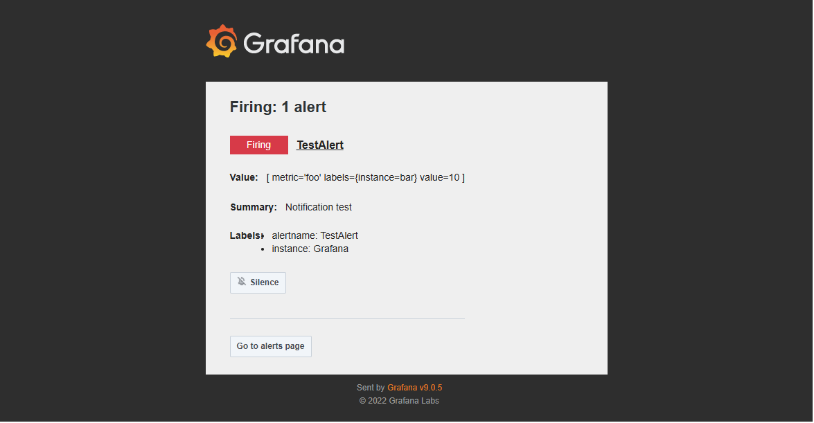 Addresses 为接受告警邮件的邮件地址,Message 与 Subject 为告警邮件所发送的内容与标题,可根据需求自定义修改,Disable resolved message 勾选后,Loki 不会为告警解除单独发送一封邮件。完成配置后点击 Test 测试发送功能是否正常,若正常,对应邮箱会收到一封邮件,如图 3-13: