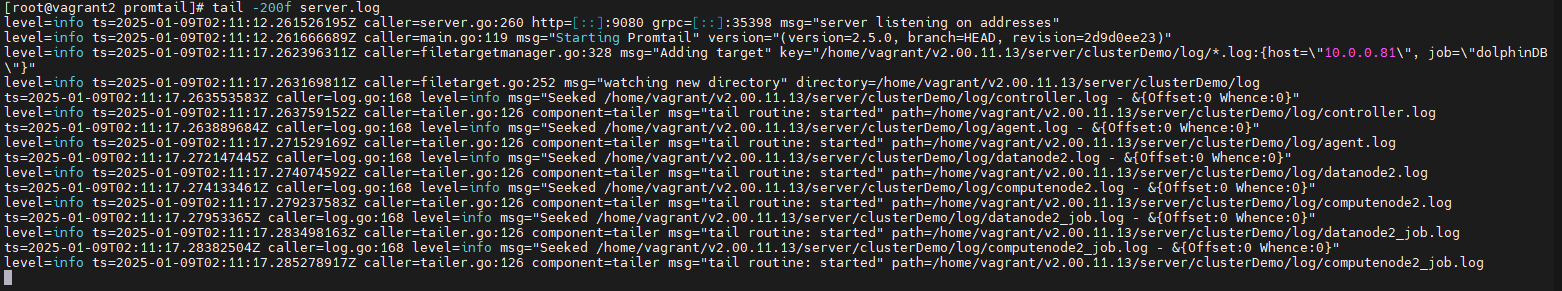 出现类似输出则为启动成功,之后依次在集群的每台机器上部署 Promtail。