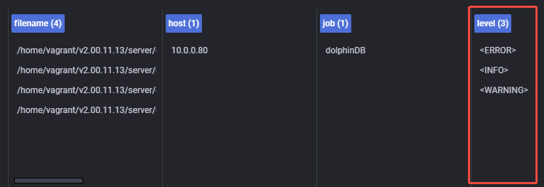 limit_config的reject_old_samples_masx_age部分:limits_config: enforce_metric_name: false reject_old_samples: true reject_old_samples_max_age: 1680h # 可接受最旧的日志时间戳,将其调大 ingestion_rate_mb: 1024 ingestion_burst_size_mb: 2048重启 Grafana,发现 Loki 可以使用 level 字段检索日志了(如图 5-2),且日志的时间戳只剩下一列(如图 5-3),因为日志的时间戳已经被解析并使用,不会再出现 Loki 时间戳和日志时间戳并列的情况,解析时间戳成功;
