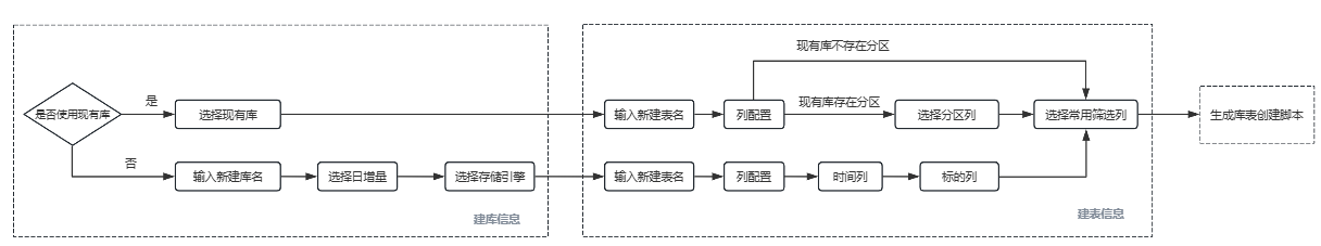 已有库场景与新建库场景下的建表信息如图 7 和 图 8 所示,具体步骤如下: