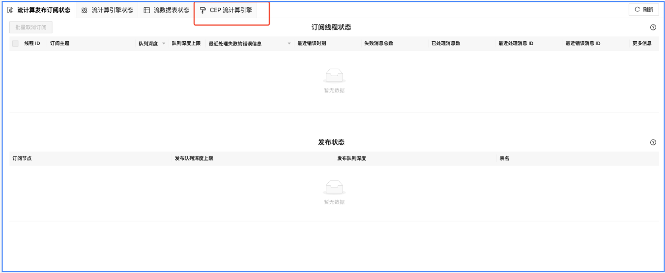 - 页面右上角手动刷新可以刷新当前所有 CEP 引擎的状态,进行实时监控。
