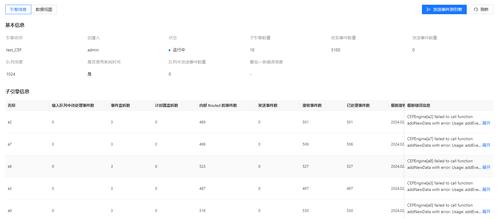 - 主要展示功能为:CEP 引擎及其子引擎的基本信息。