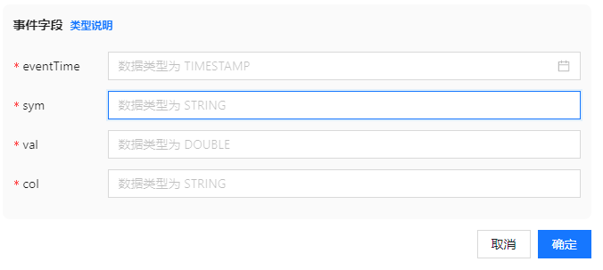 - 事件字段类型说明参照 DolphinDB 数据类型。