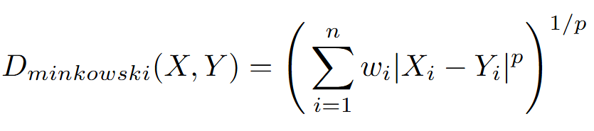 minkowski(X, Y, p, [weights])