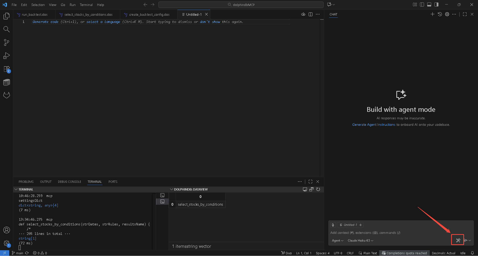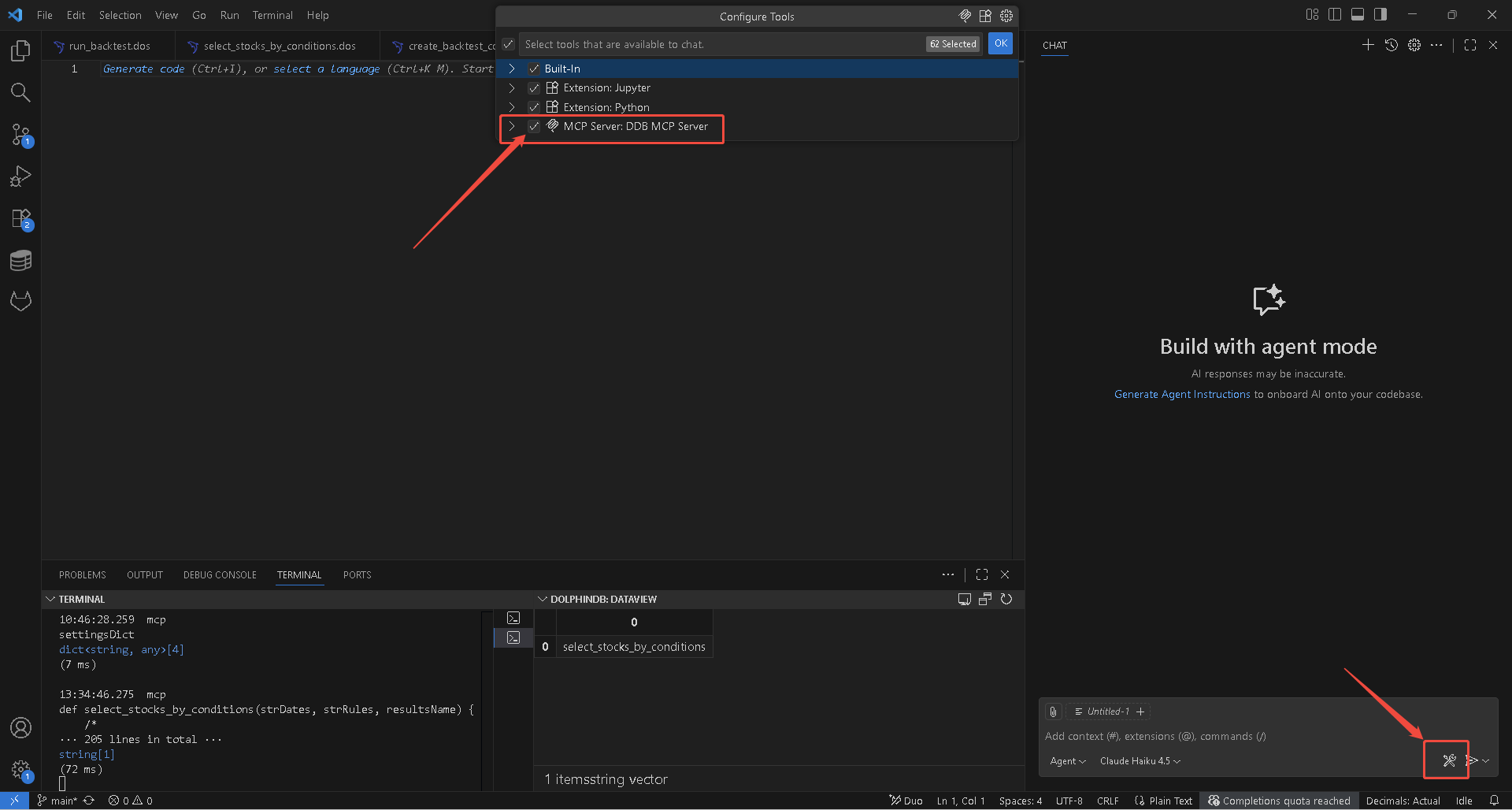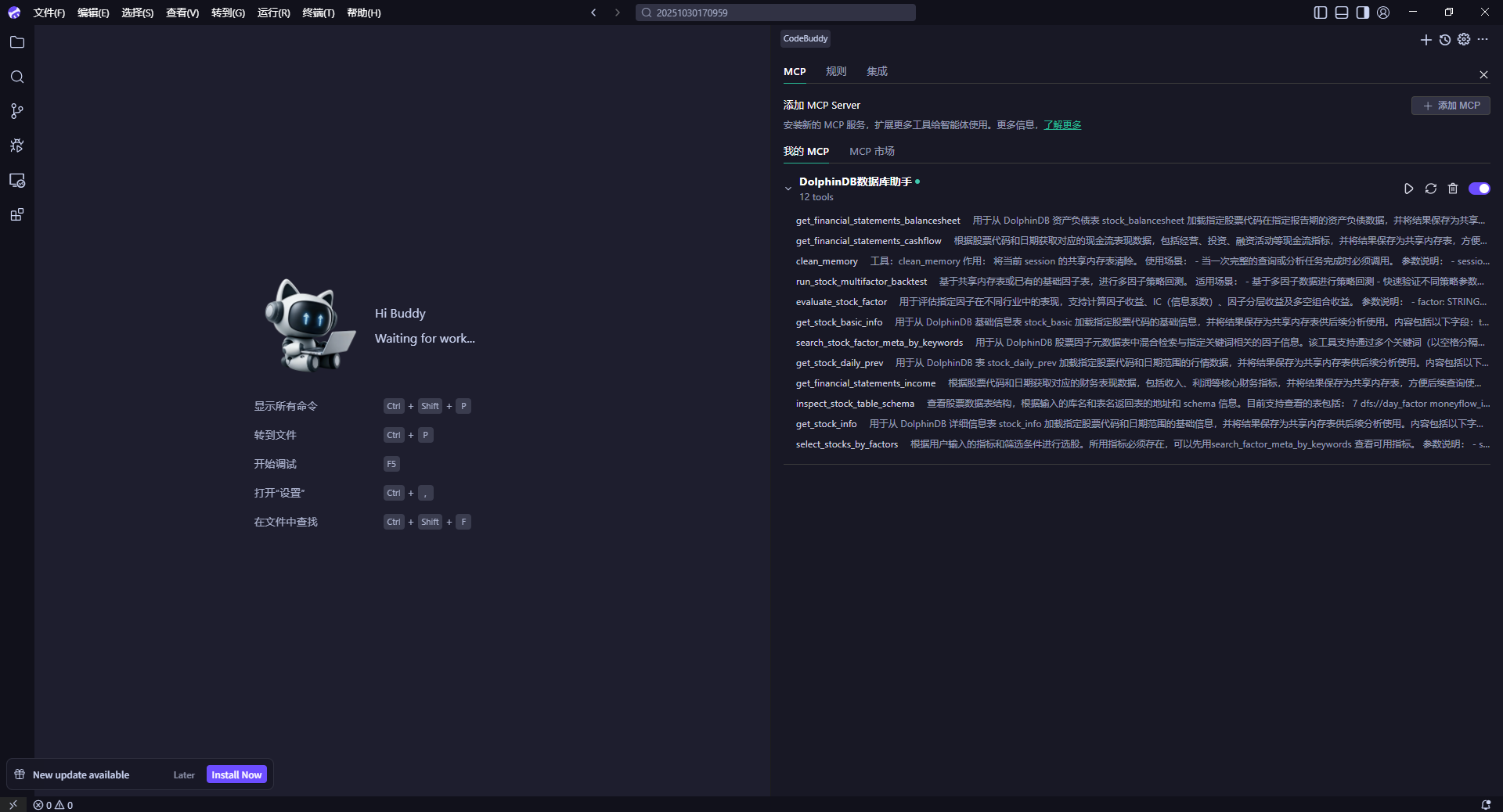 配置完成后,即可使用 DolphinDB MCP Server 提供的工具和实时数据。